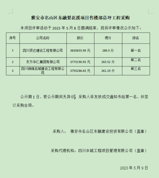 雅安市名山區東融梨花溪項目售樓部總坪工程采購